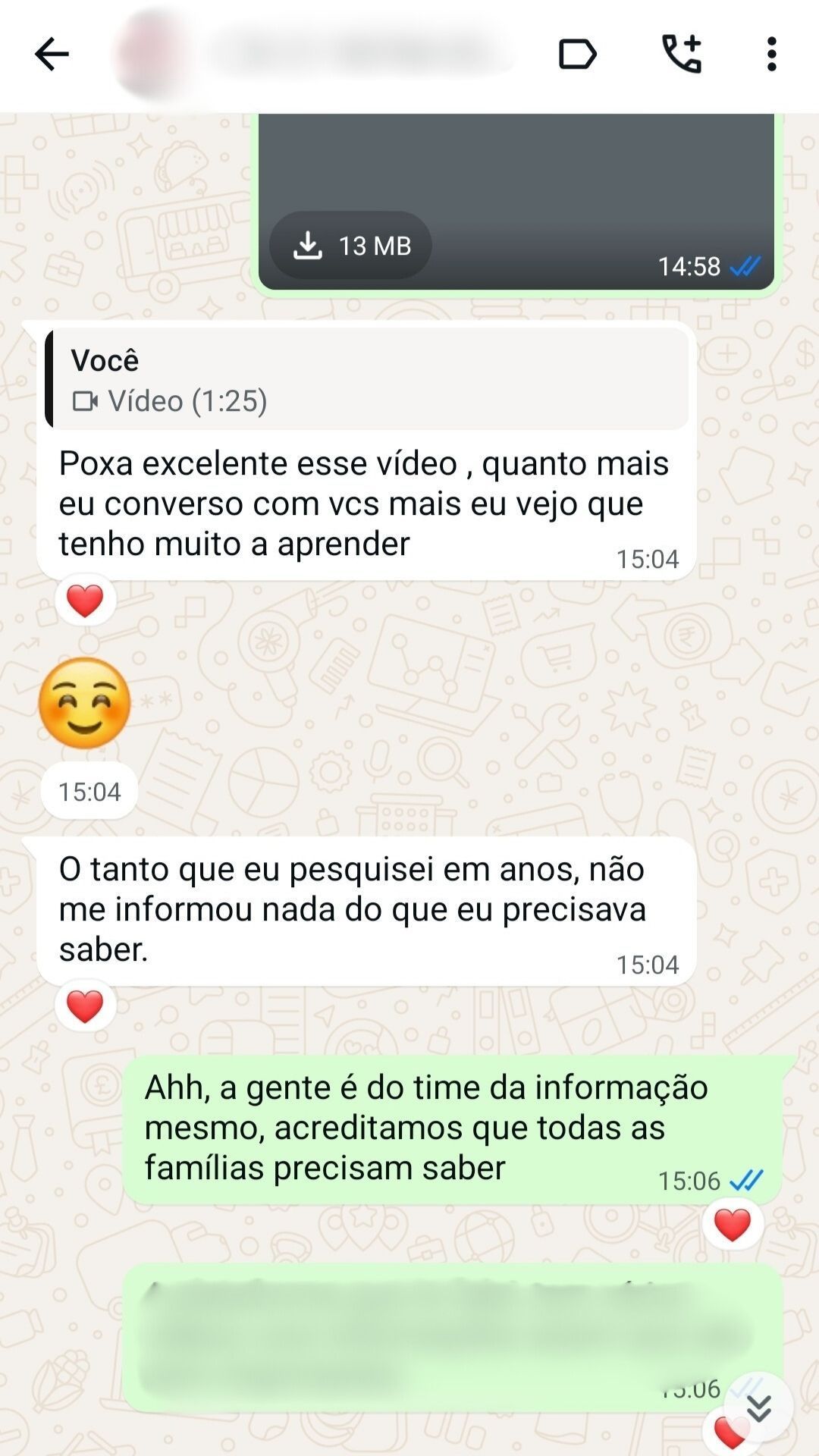 Mãe do Vinícius, de 4 anos, suporte 1, verbal